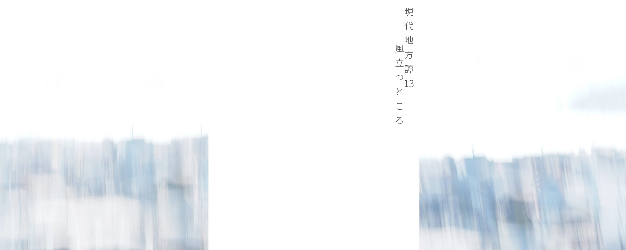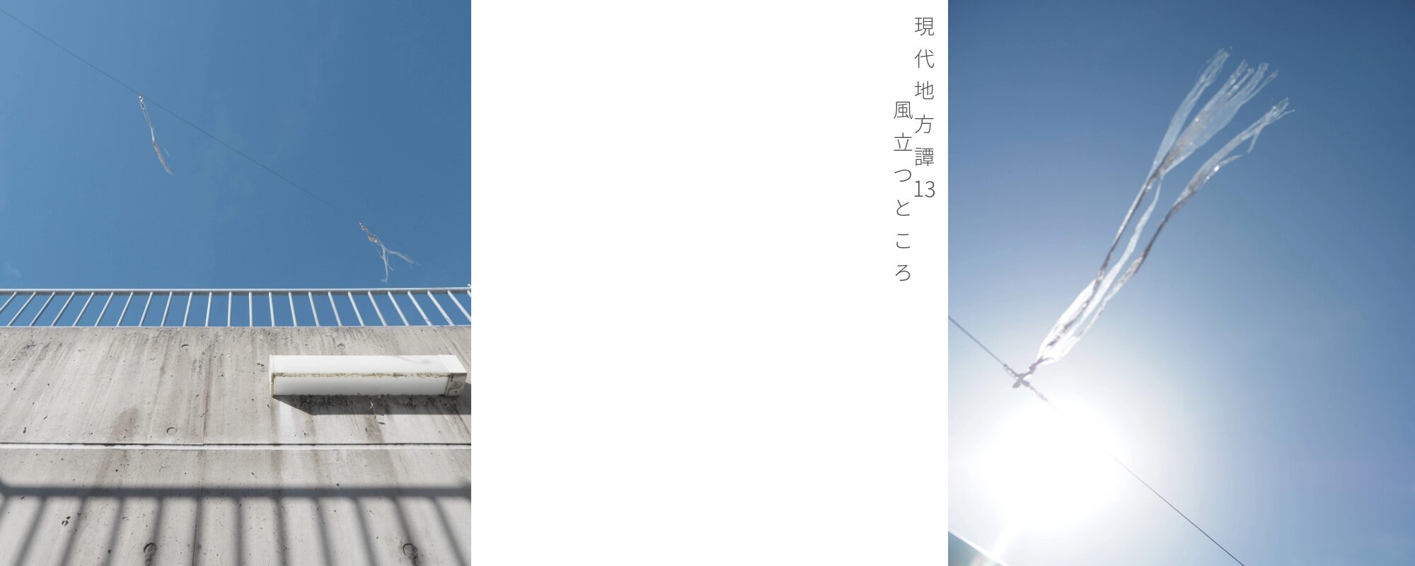 現代地方譚13では、地域の伝統・歴史・文化の継承の課題を孕みながら、世代交代が進むことで再活性化の新たな動きも出始めてきている、このまちにドラスティックな変化が起こるタイミングを「風が立つ」イメージに重ねます。