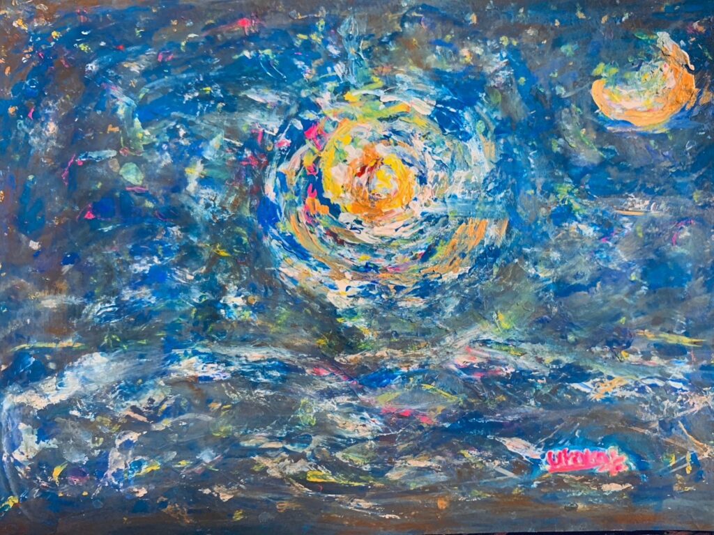 色と音、そして “その場に生まれる気配” をキャンバスに映し出すライブペインター。筆だけでなく手や指、身体の動きを使って描き出される表現と自然の中でのパフォーマンスや音楽家とのコラボレーションなど、場のエネルギーをそのまま色彩へと変換する独自のスタイルが特徴。また、ハンドメイド作品も展開しており、1 点ずつ異なるデザインの“身にまとうアート” を制作している。
